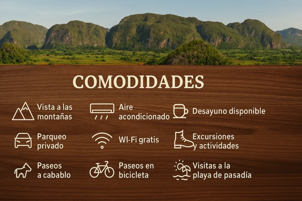 Rodeado de montañas verdes y el aroma del tabaco, nuestro alojamiento te invita a vivir la esencia auténtica de Cuba, con el encanto colonial y todas las comodidades modernas que mereces para relajarte y disfrutar.